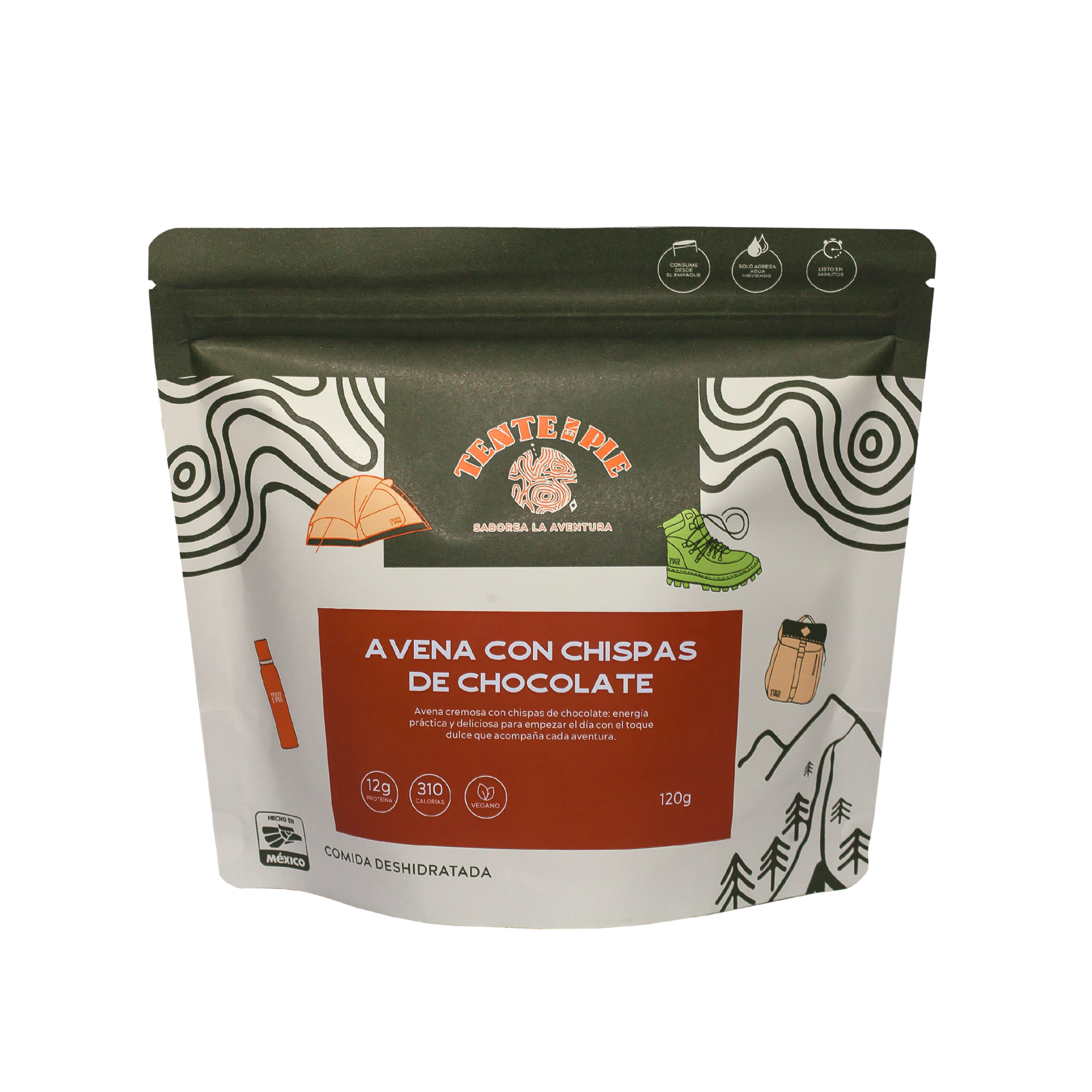 Despierta con energía y buen sabor. Nuestra avena con chispas de chocolate combina avena integral, blueberries y un toque de leche de coco para una dosis natural de energía y dulzura. Ideal para comenzar el día de travesía o disfrutar un desayuno cálido y reconfortante en el campamento.