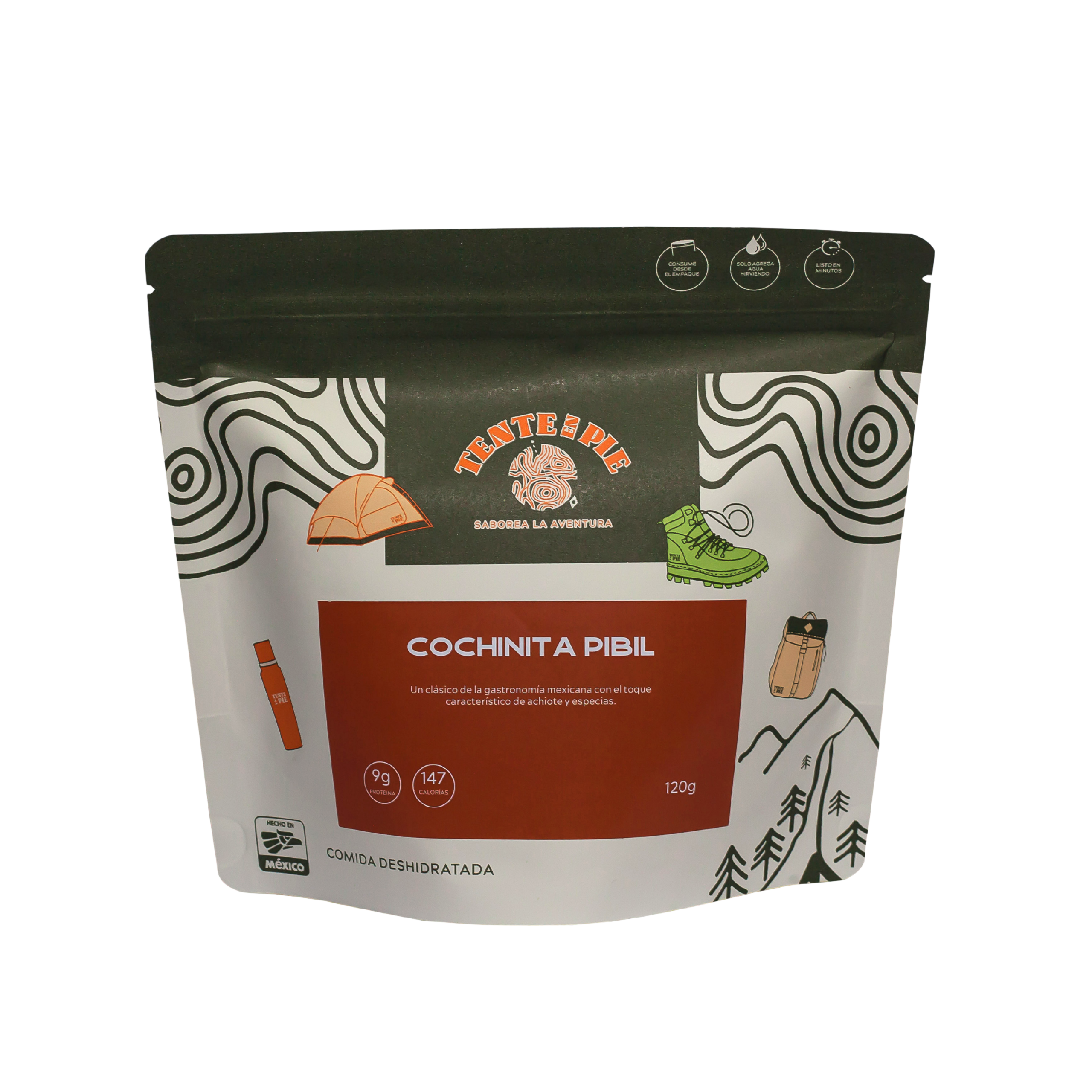 El sabor del sur en tu mochila. Nuestra cochinita pibil deshidratada combina carne de cerdo marinada en achiote, naranja agria y especias tradicionales. Una explosión de sabor y energía que revive el espíritu y alimenta cuerpo y alma después de cualquier jornada. Ideal para: – Montaña, trekking y senderismo. – Camping y noches bajo las estrellas. – Viajes, escapadas de fin de semana y road trips. – Aventureros que buscan comida rica, ligera y práctica. – Comida de emergencia.